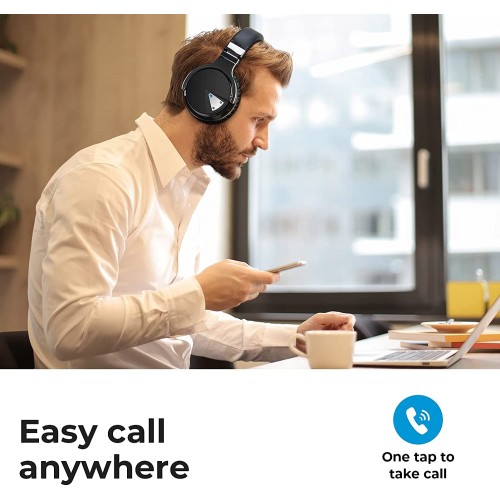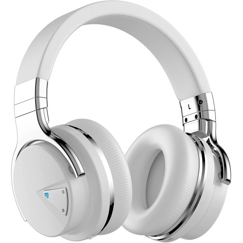 Reverbix E7 Noise Canceling Headphones Overhead Bluetooth Headphones with Mic for Phone-Call, Comfortable Wireless Headphones & Light Weight, Deep Bass, 35-Hour Battery Life, White