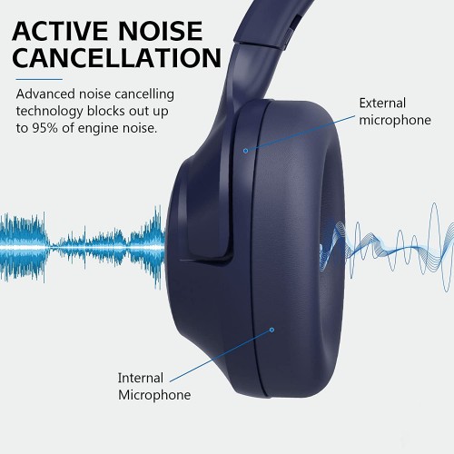 REETEC Hybrid Active Noise-Canceling Headphones Wireless Over Ear Headset Bluetooth V5.0, 30H Playtime Comfortable Fit for Laptop Travel/Work,Blue