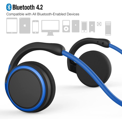 Small Bluetooth Headphones Wrap Around Head - Sports Wireless Headset with Built in Microphone and Crystal-Clear Sound, Foldable and Carried in The Purse, and 12-Hour Battery Life, Blue