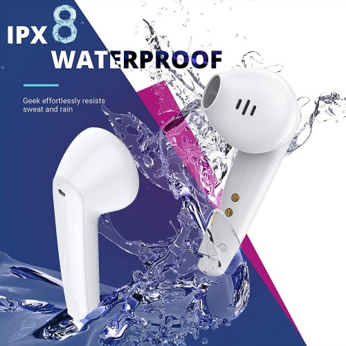 One-step Pairing Simply take them out of the charging case, put them in your ears. Geek wireless earbuds are automatically on and always connected-immersing you in rich, high-quality sound. Synchronous Connect Tech Thanks to the role switch feature, two earbuds connect to the phone in both directions, instead of separating the Master and Slave earbud like traditional. Save time and energy pairing the earbuds to your phone, flip between single earbud and couple earbuds mode in a second. High-end Smart Touch Play/Pause - Tap Once Answer Call/End Call - Tap Once Reject Call - Hold 2 seconds Previous Track - Double tap L Next Track - Double tap R Voice Assistant - Tap 3 times Decrease Volume - Touch and Hold L Increase Volume - Touch and Hold R Clear Voice For Phone Call Call noise reduction technology effectively blocks out background noise and accurately picks up your voice, so you're heard naturally and loudly on the other end without interference even in a noisy environment. Microphone installed on each earbud can pick up your voice more clearly and reach the best call quality. Ergonomic Fit Not all ears are made the same, so not all earphones are created equally. Geek true wireless earbuds offers a semi-in-ear design with the most comfortable 105В°in-ear angle for all day ergonomic comfort. Your ears won't feel sore after hours of wear. IPX8 Waterproof Keep playing, running, and dancing in any conditions. Liberty Neo wireless earbuds effortlessly resist sweat and rain, and can even be rinsed clean under the tap.